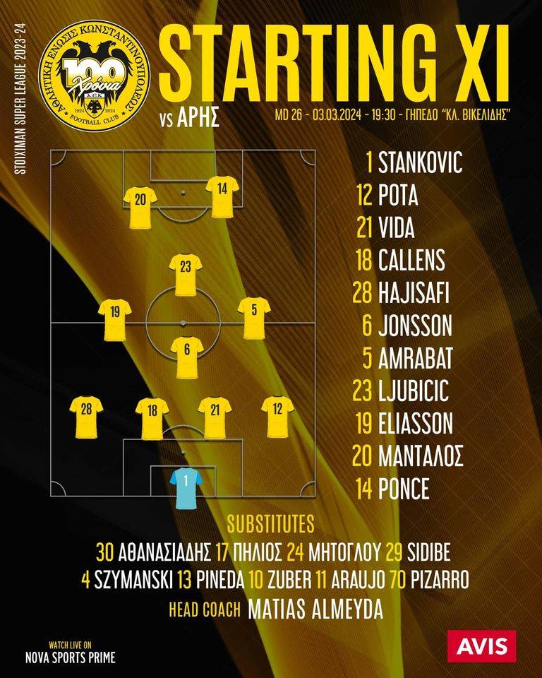 Με αλλαγές στο αρχικό σχήμα σε σχέση με το τελευταίο χρονικά παιχνίδι απέναντι στον ΠΑΣ Γιάννινα ξεκινά η ΑΕΚ κόντρα στον Άρη.