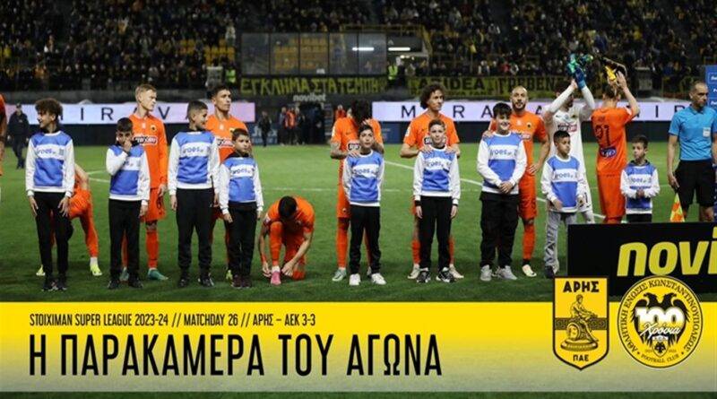 H AEK δεν κατάφερε να ολοκληρώσει ως πρώτη την κανονική διάρκεια του πρωταθλήματος, καθώς αναδείχθηκε ισόπαλη 3-3 με τον Άρη, στο «Κλεάνθης Βικελίδης», στο πλαίσιο της 26ης αγωνιστικής της STOIXIMAN SUPER LEAGUE 2023-24.