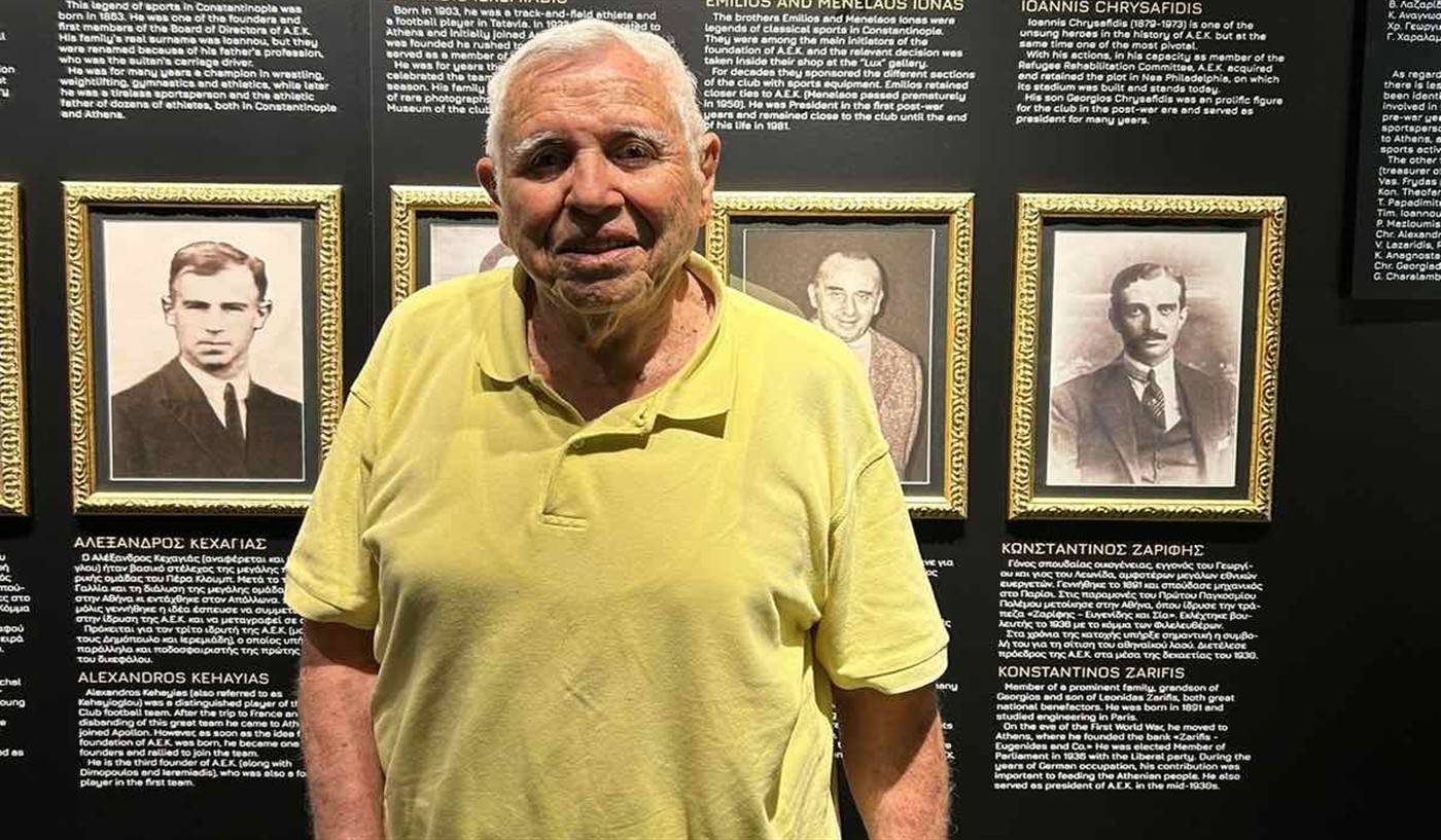Μία επίσκεψη που προκάλεσε μεγάλη συγκίνηση δέχθηκαν σήμερα τα Μουσείο Ιστορίας της ΑΕΚ και Προσφυγικού Ελληνισμού. Ο 89χρονος Θάνος Ιωνάς, γιος του εκ των ιδρυτών της ΑΕΚ Αιμίλιου Ιωνά, βρέθηκε στην OPAP ARENA, συνοδευόμενος από τον εγγονό του που φέρει το ίδιο ονοματεπώνυμο με αυτόν.
