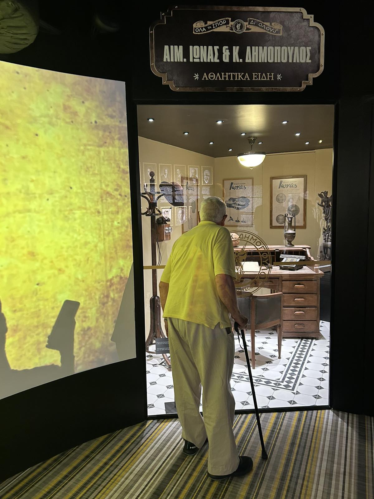 Ο κ. Ιωνάς στάθηκε με συγκίνηση μπροστά στις προθήκες, στις οποίες υπήρχαν αναφορές στον σπουδαίο πατέρα του, και περιεργάστηκε με ενδιαφέρον και θαυμασμό την αναπαράσταση του καταστήματος αθλητικών ειδών «Ιωνάς-Δημόπουλος», στο οποίο είχε γίνει η ιδρυτική συνέλευση της ΑΕΚ στις 13 Απριλίου 1924. Είχε μάλιστα την ευκαιρία να θυμηθεί πολλές ιστορίες, ακόμα και από τα προπολεμικά χρόνια, όταν ήταν η «μασκότ» της ομάδας!