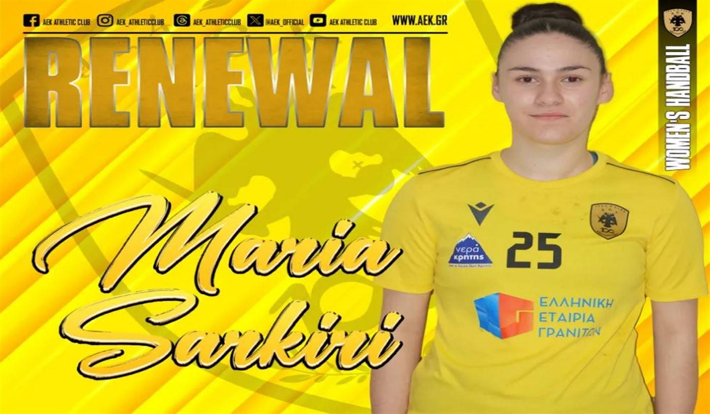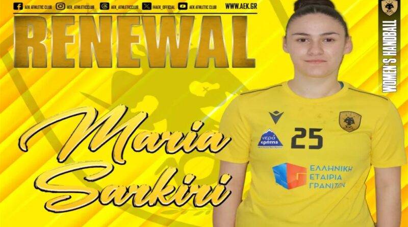 Η ΑΕΚ βρίσκεται στην πολύ ευχάριστη θέση να ανακοινώσει την ανανέωση της συνεργασίας της με την Μαρία Σαρκίρη. Η νεαρή πλέι μέικερ, γεννημένη στις 11/09/2007, θα βρίσκεται και τη νέα σεζόν στο τμήμα του Χάντμπολ Γυναικών της ΑΕΚ.
