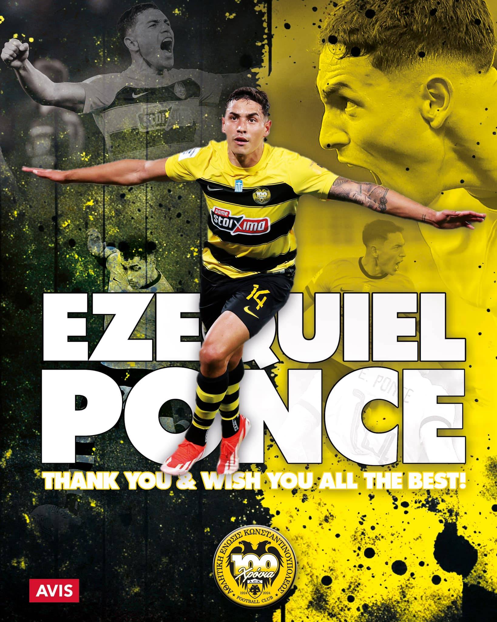 “Η ΠΑΕ ΑΕΚ ανακοινώνει τη συμφωνία της με την Houston Dynamo FC του MLS για την παραχώρηση του ποδοσφαιριστή Εζεκιέλ Πόνσε.