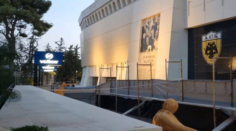 Τα αγάλματα των Κώστα Νεστορίδη και Μίμη Παπαϊωάννου τοποθετήθηκαν έξω από τα επίσημα του γηπέδου της ΑΕΚ.
