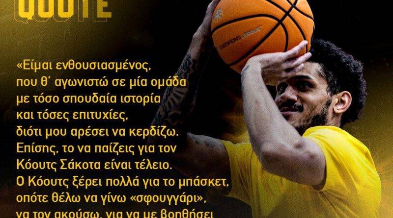 Η δήλωσή του, στην επίσημη σελίδα της ΚΑΕ ΑΕΚ στο Facebook, έχει ως εξής: «Είμαι ενθουσιασμένος που θ’ αγωνιστώ σε μία ομάδα με τόσο σπουδαία ιστορία και τόσες επιτυχίες, διότι μου αρέσει να κερδίζω. Επίσης, το να παίζεις για τον κόουτς Σάκοτα είναι τέλειο. Ο κόουτς ξέρει πολλά για το μπάσκετ, οπότε θέλω να γίνω σφουγγάρι, να τον ακούσω, για να με βοηθήσει και για το μέλλον μου».