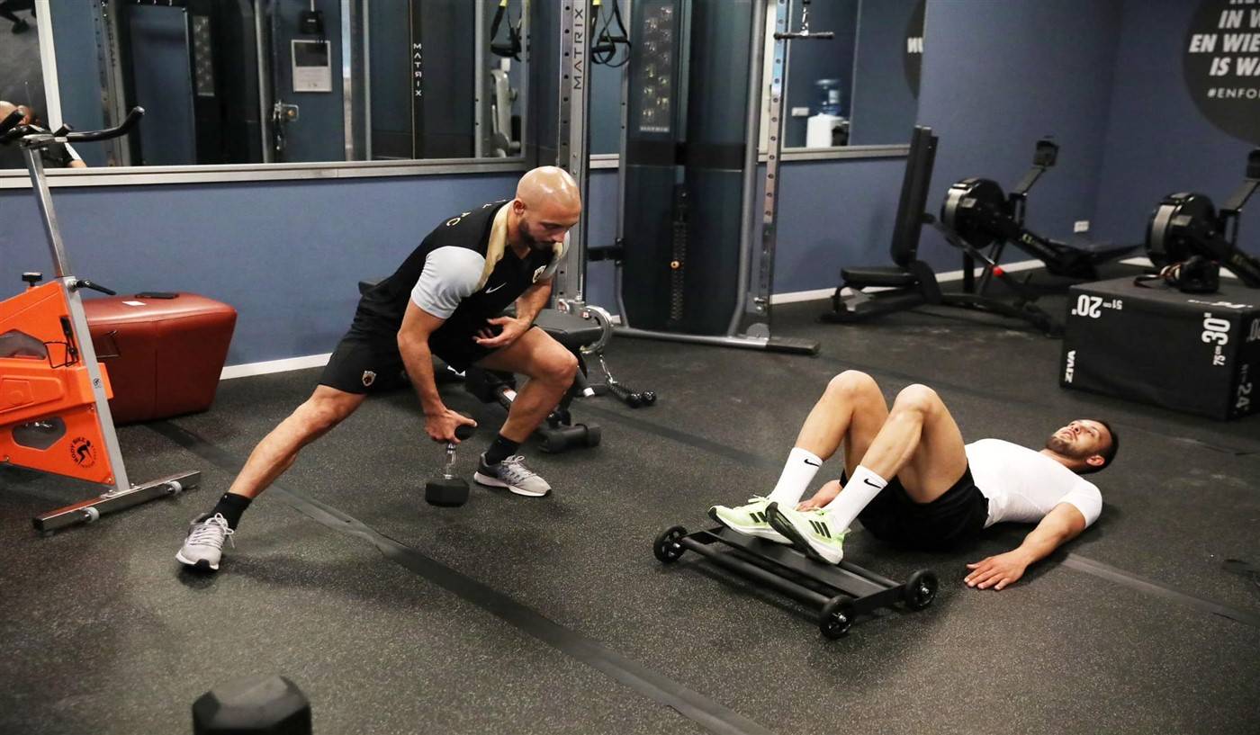 Οι δύο παίκτες της ΑΕΚ έκαναν ποδήλατο μαζί με τον Γκίντο Μπονίνι, έπειτα ξεκίνησαν μαζί του τη δουλειά στο γήπεδο κι έκαναν ασκήσεις με βάρη στο γυμναστήριο.