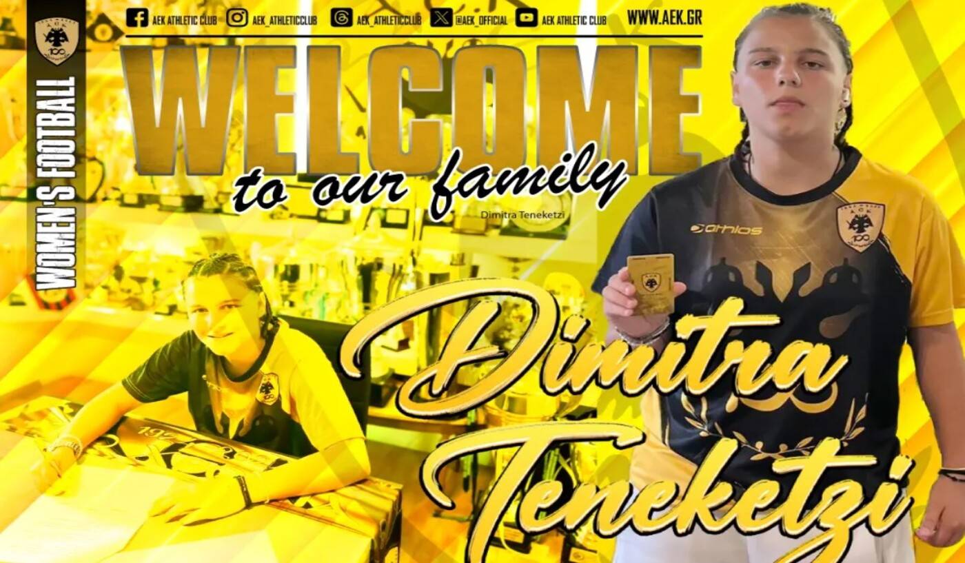 Η ΑΕΚ βρίσκεται στην ευχάριστη θέση να ανακοινώσει την έναρξη της συνεργασίας της με την Δήμητρα Τενεκετζή. Η νεαρή τερματοφύλακας, γεννηθείσα στις 27/02/2008, θα ενισχύσει το τμήμα του Ποδοσφαίρου Γυναικών της ΑΕΚ.