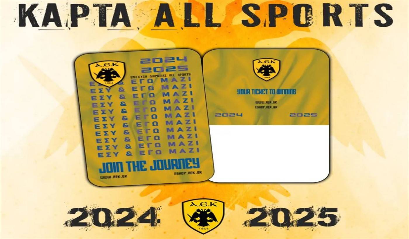 Η ΑΕΚ ανακοινώνει την έναρξη της διάθεσης του ALL SPORTS ΕΙΣΙΤΗΡΙΟΥ ΔΙΑΡΚΕΙΑΣ 2024-25!