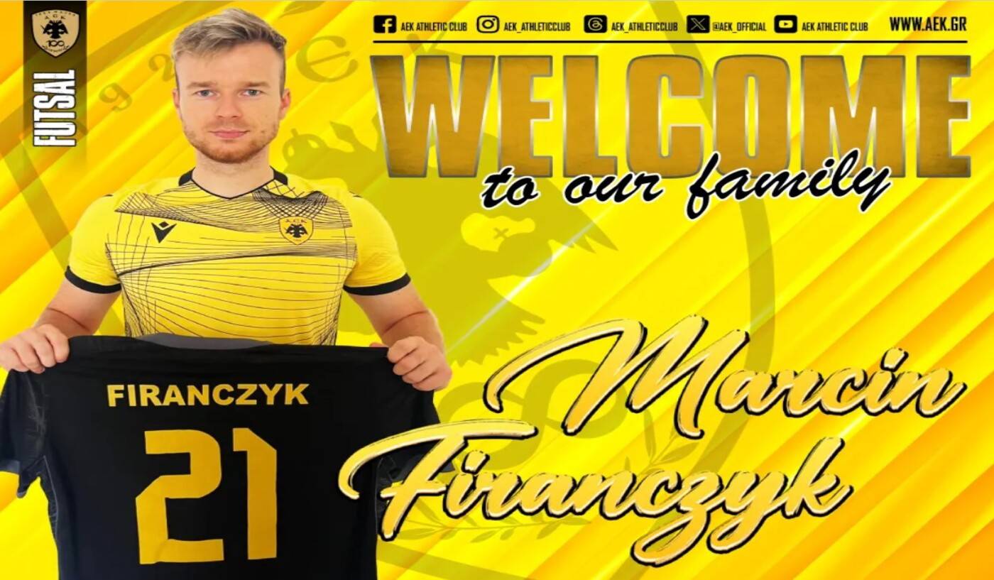 Η ΑΕΚ βρίσκεται στην ευχάριστη θέση να ανακοινώσει την έναρξη της συνεργασίας της με τον Μαρσίν Φίραντσικ. Ο 27χρονος (22/03/1997) Πολωνός άσος, εντάσσεται στο δυναμικό της ανδρικής ομάδας Futsal του Συλλόγου.