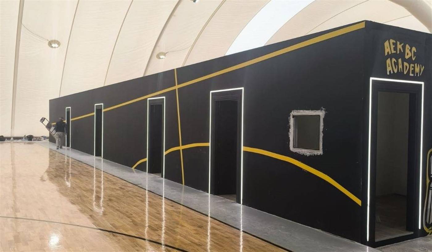 Δεν σταματάνε οι εργασίες στο ΑΕΚ BC Academy Sports Center, με το γήπεδο όπου γυμνάζεται η μπασκετική Ακαδημία της ΑΕΚ να παίρνει μορφή.