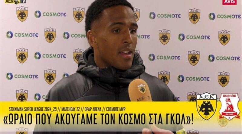 Έπειτα από το τέλος του αγώνα, ο Ελίασον μίλησε στην κάμερα του AEK TV για το παιχνίδι, για την προσωπική του απόδοση, αλλά και για το συναίσθημα να ακούν οι ποδοσφαιριστές τον κόσμο που βρισκόταν έξω από το γήπεδο.