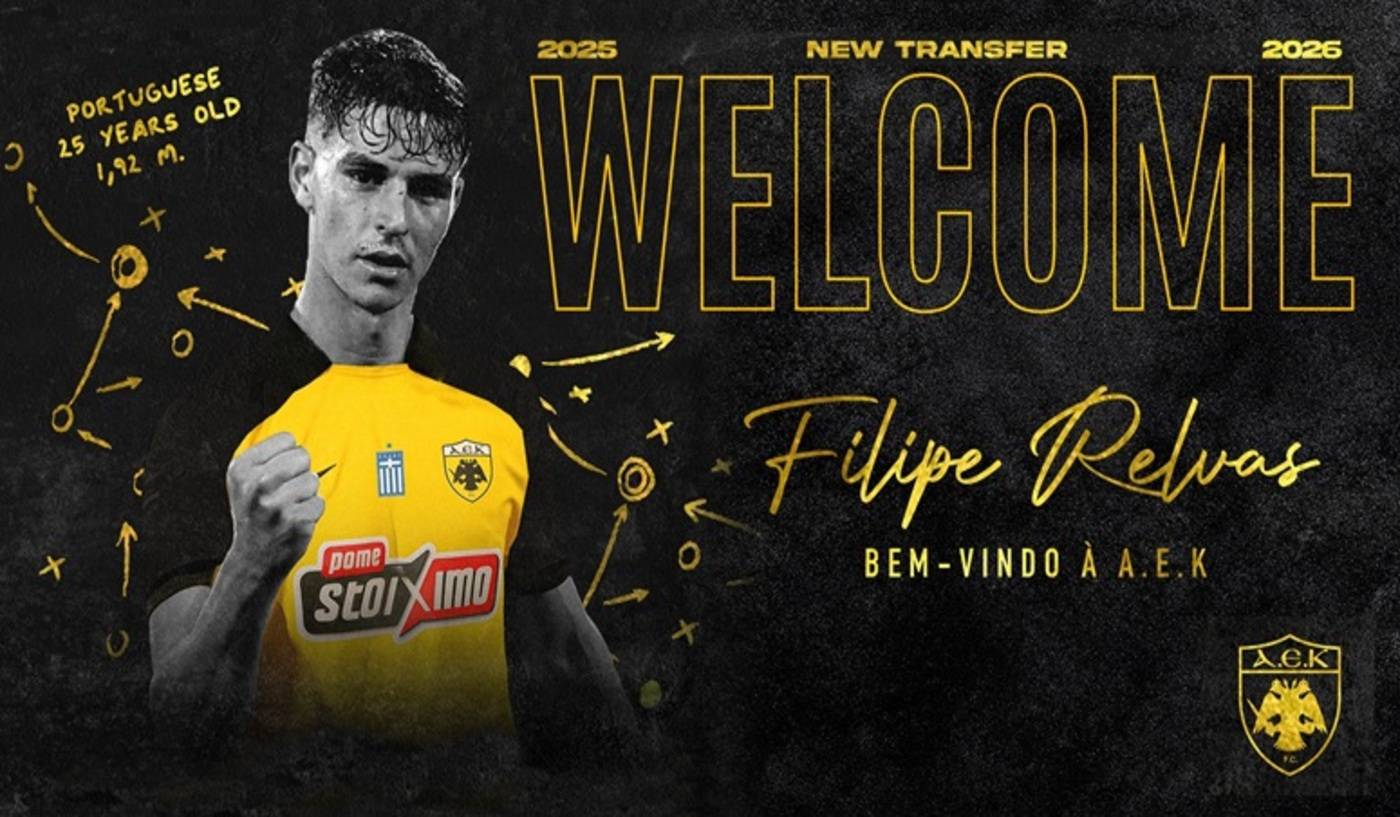Η ΠΑΕ ΑΕΚ ανακοινώνει την απόκτηση με μεταγραφή από τη Βιτόρια Γκιμαράες, του Πορτογάλου κεντρικού αμυντικού Φιλίπε Ρέλβας (Filipe do Bem Relvas Vitó Oliveira).