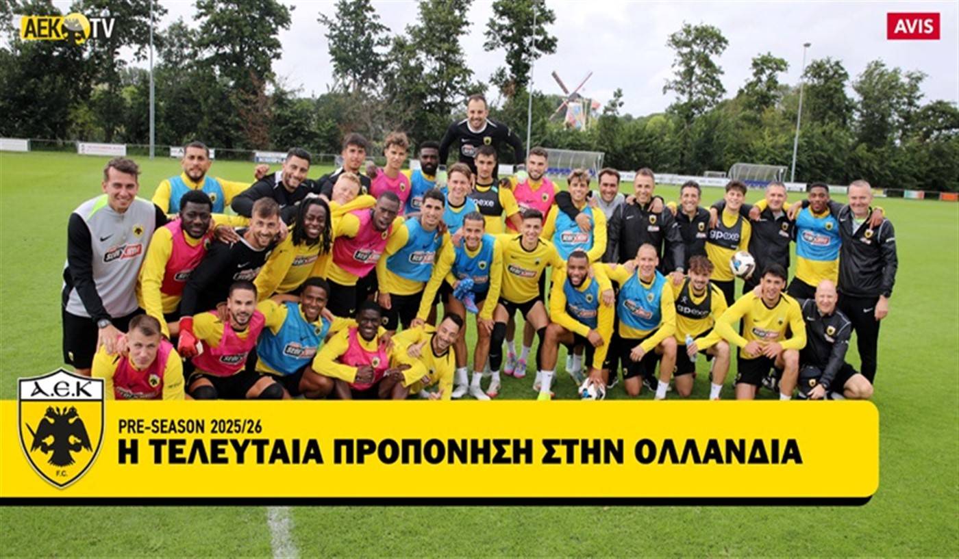 Τελευταία προπόνηση χθες για την ομάδα της ΑΕΚ στο Burgh-Haamstede και ακολουθεί το φιλικό με την Kortrijk σήμερα το απόγευμα.