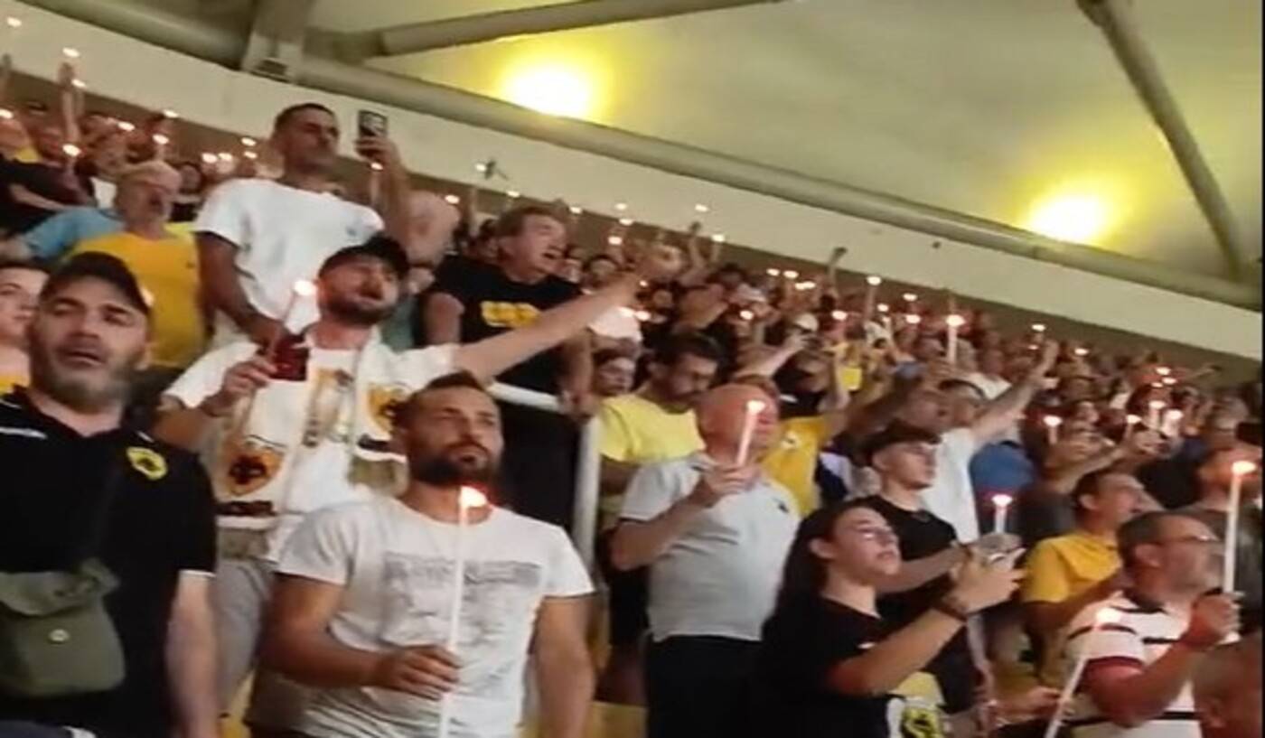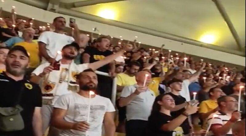 Η Θύρα “Δημήτρης Χατζηχρήστος” τιμά τον Μιχάλη Κατσούρη στο φιλικό της ΑΕΚ με αντίπαλο την Ομόνοια Λευκωσίας, ανάβοντας κεριά…