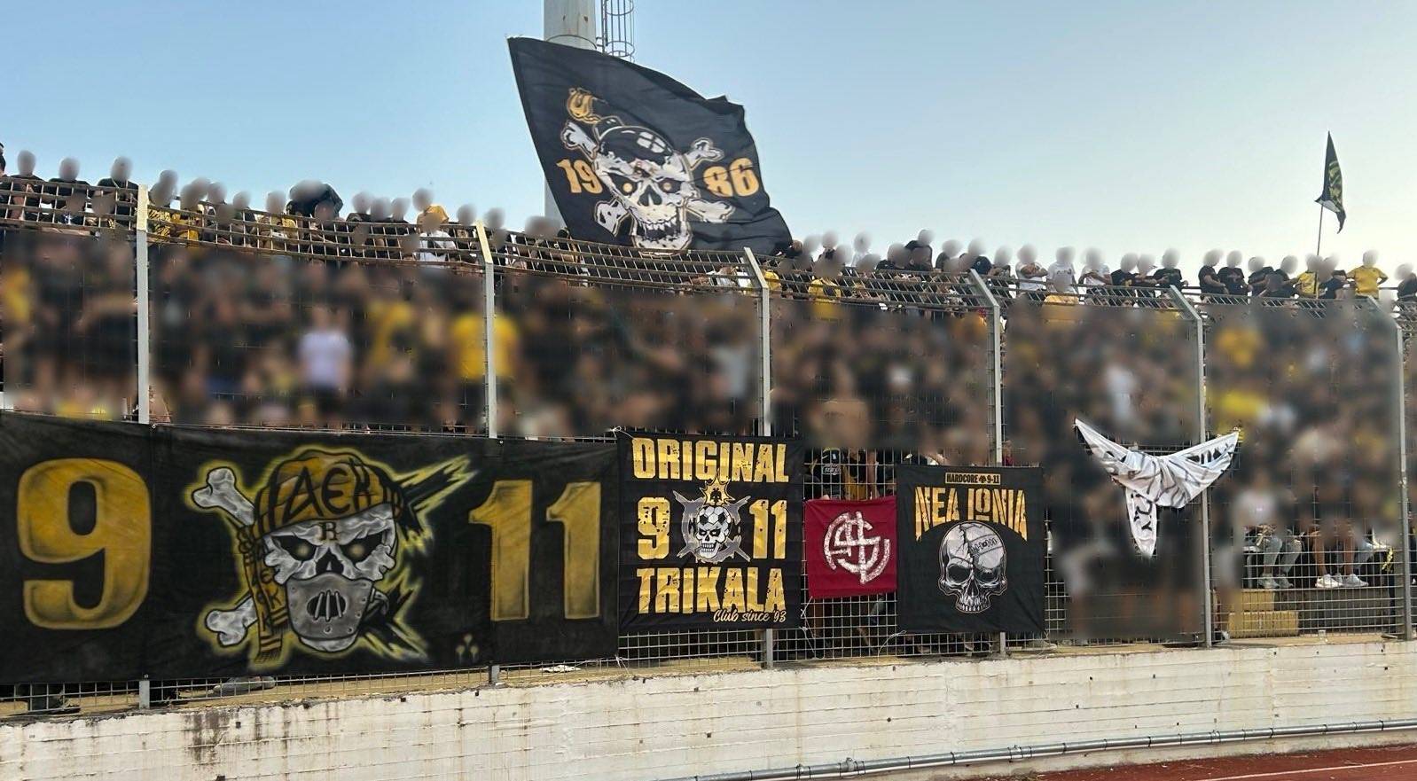 Από τον χθεσινό αγώνα στην Λειβαδιά. Τα παιδιά της ΑΕΚ 9-11 ήταν εκεί για μια ακόμη φορά κι έστειλαν μήνυμα μέσω πανό για τα ακριβά εισιτήρια.