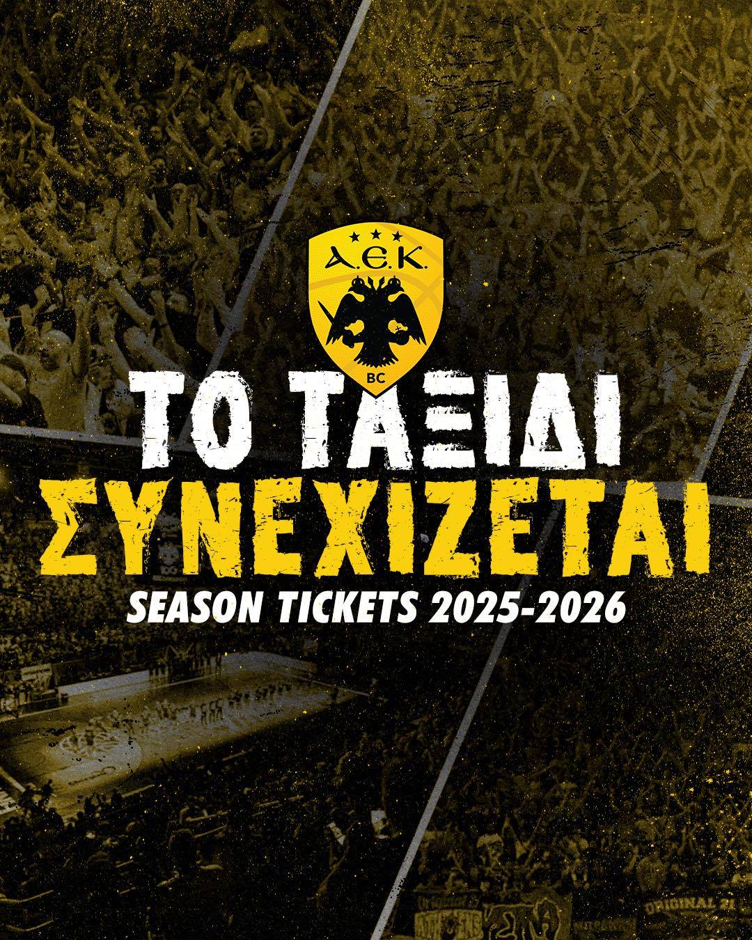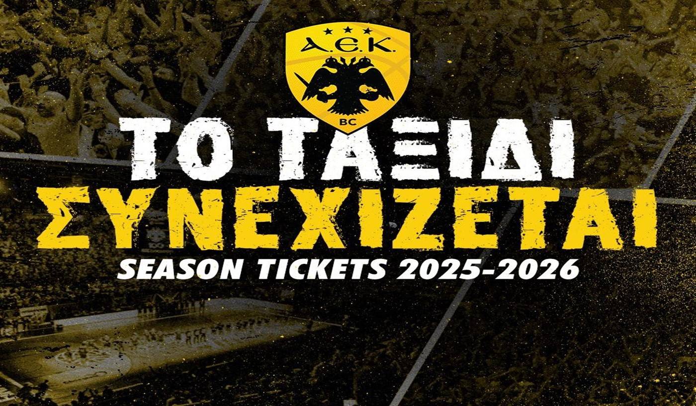 Η ΑΕΚ BC ενημερώνει, ότι συνεχίζεται ηλεκτρονικά η διάθεση των Εισιτηρίων Διαρκείας της «Βασίλισσας» για την αγωνιστική περίοδο 2025-2026.