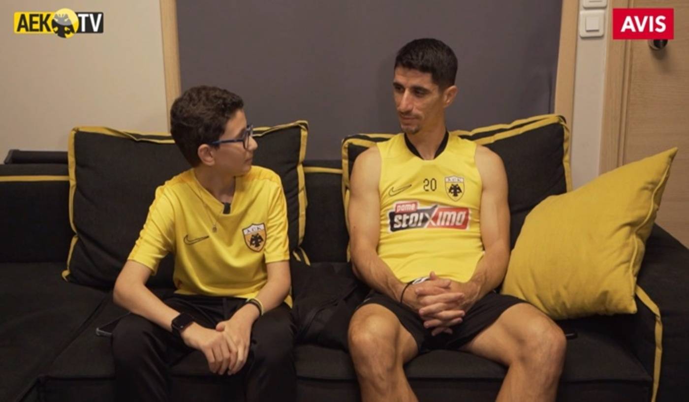 Ο Μιχαήλ Πάνου, ο νεαρός φίλος της ΑΕΚ που νίκησε τον καρκίνο και συγκίνησε όλη την Ελλάδα με τον αγώνα του, επισκέφθηκε το προπονητικό κέντρο των Σπάτων και «ανέκρινε» τον αρχηγό της ομάδας μας επί παντός του επιστητού.