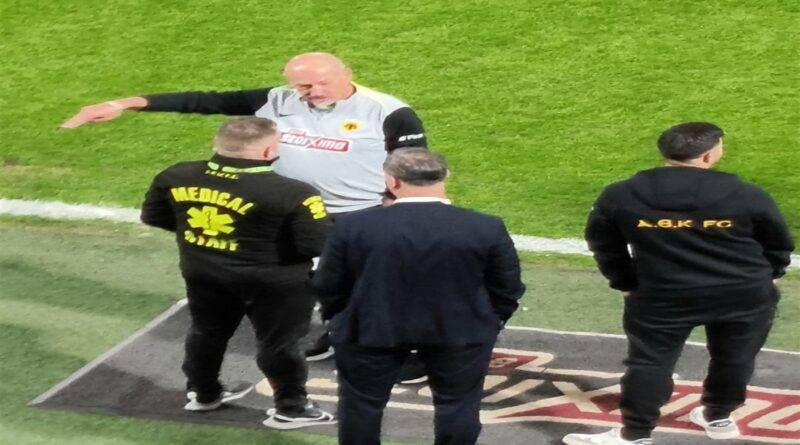 Μάλιστα είχε ολιγόλεπτο τετ α τετ με τον υπεύθυνο εθελοντών διασωστών στην “Αγιά Σοφιά” Δημήτρη Γάλλο και τον γενικό αρχηγό της ομάδας, Δημήτρη Ναλιτζή πριν τη σέντρα του αγώνα με τον Άρη.