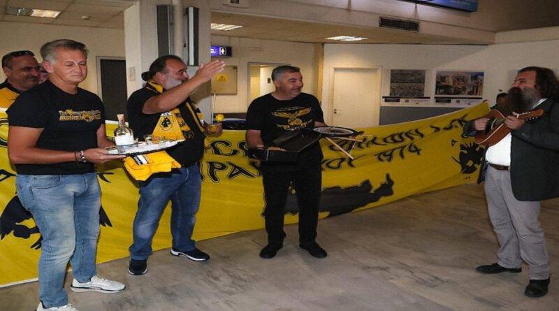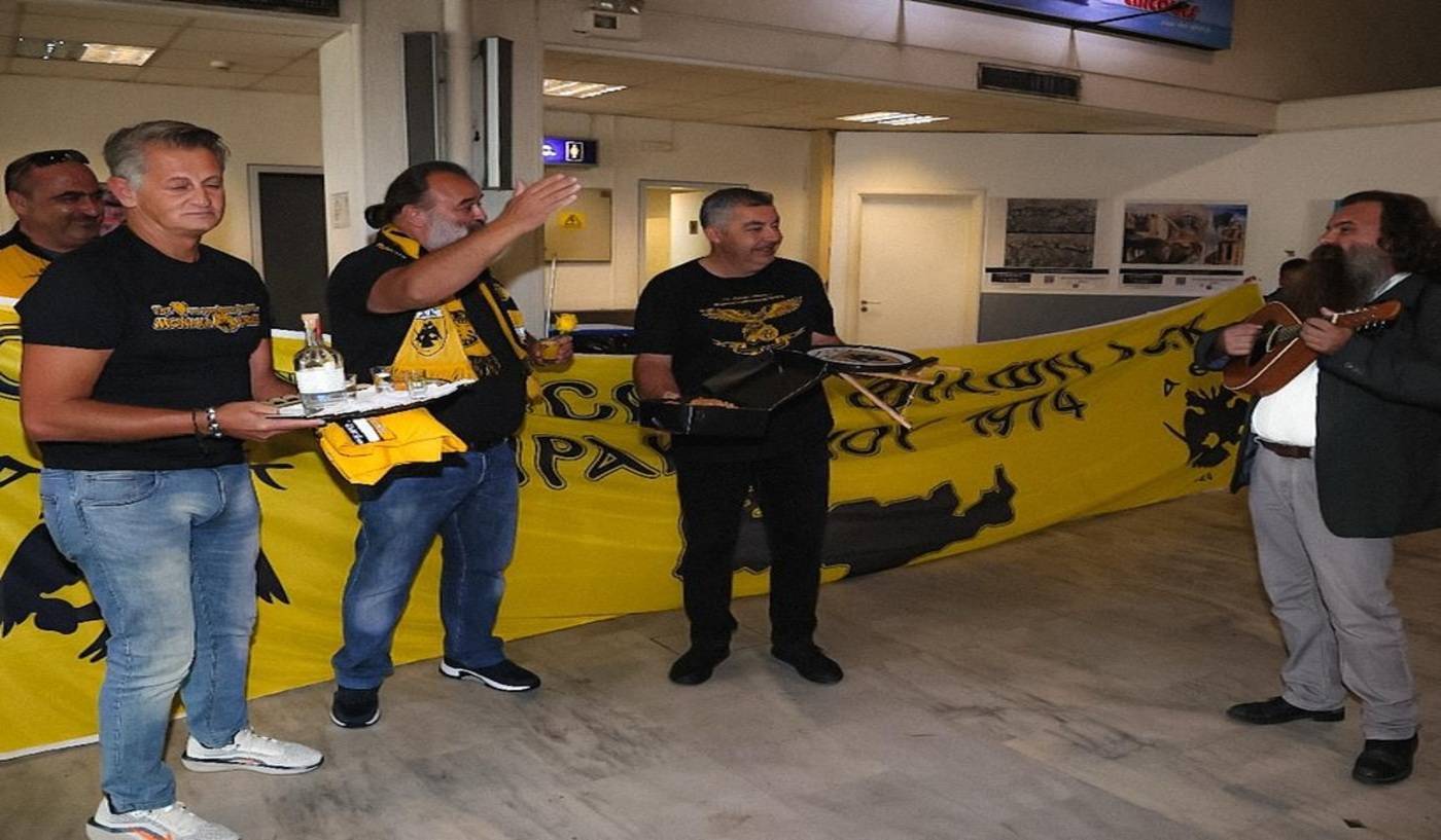 Με κρητικά εδέσματα, ρακή και μαντινάδα υποδέχθηκαν οι οπαδοί της ΑΕΚ στην Κρήτη τον Ηλιόπουλο (photos)
