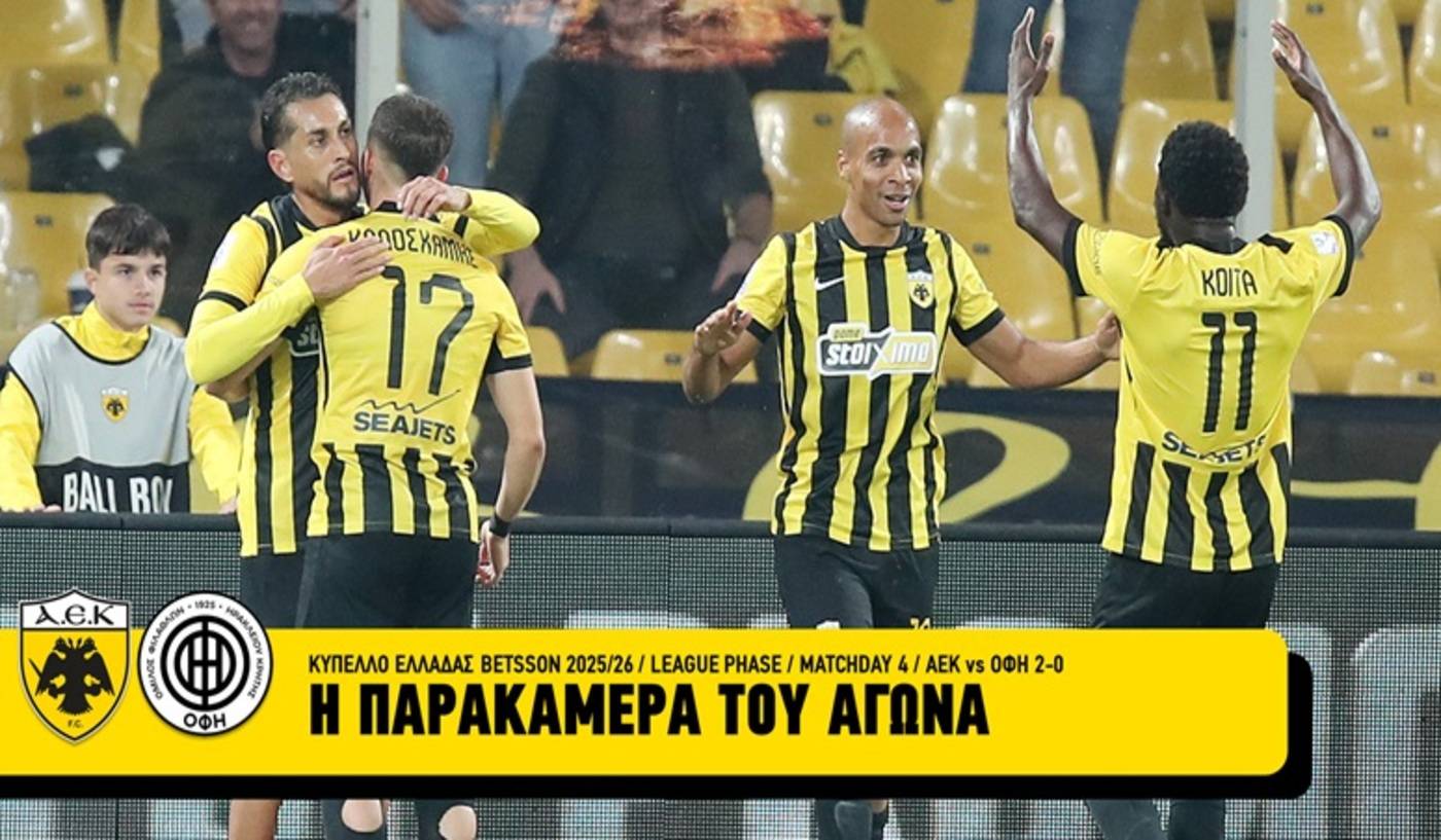 Ακόμα μία νίκη για την ΑΕΚ, αυτή τη φορά στο Κύπελλο Ελλάδας Betsson με 2-0 επί του ΟΦΗ, και απευθείας πρόκριση στα προημιτελικά της διοργάνωσης.
