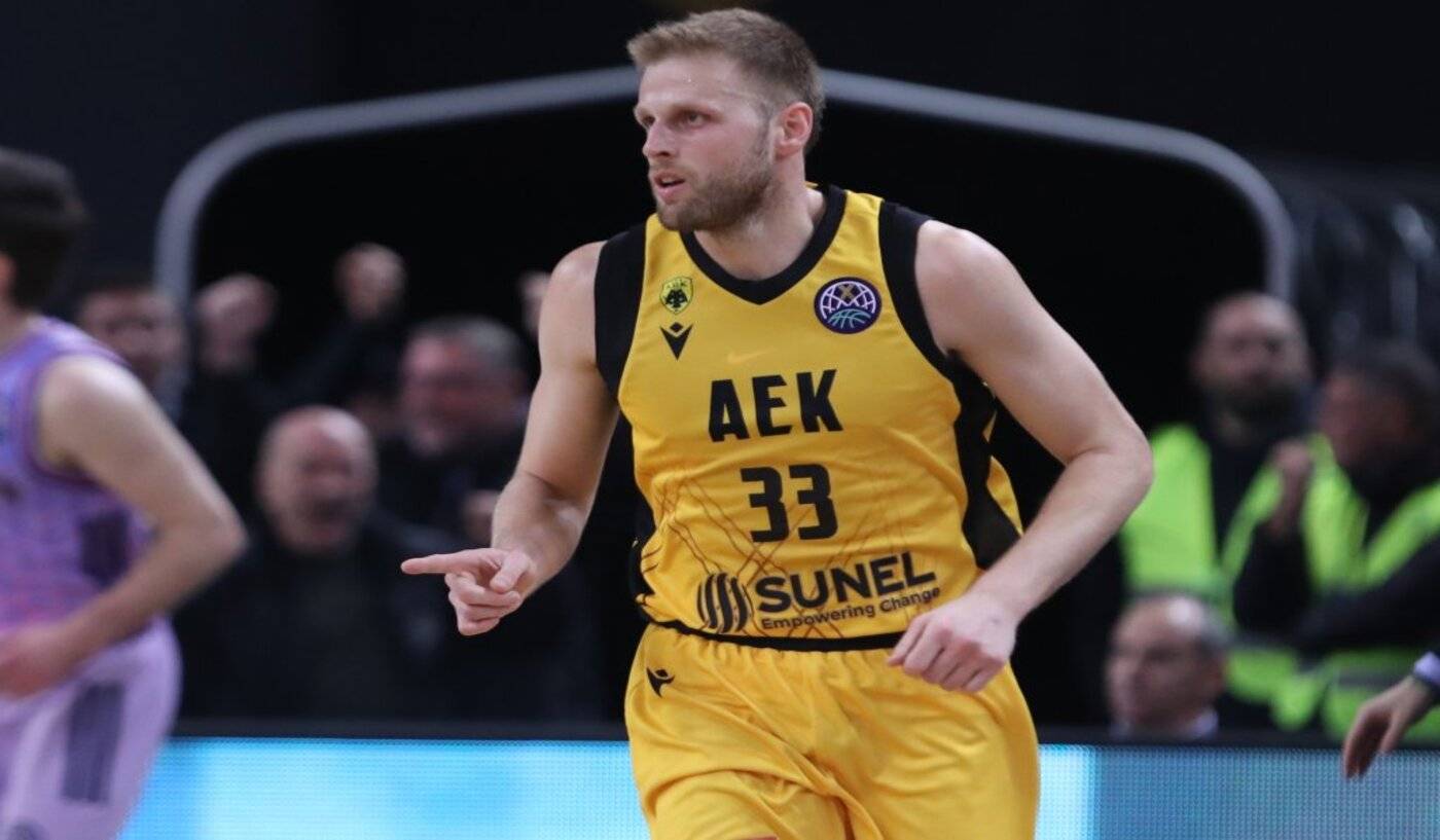 Με δικό του τρίποντο ο Βασίλης Χαραλαμπόπουλος έστειλε την ΑΕΚ στο +8 από την Άλμπα Βερολίνου και στη νίκη με 88-80.