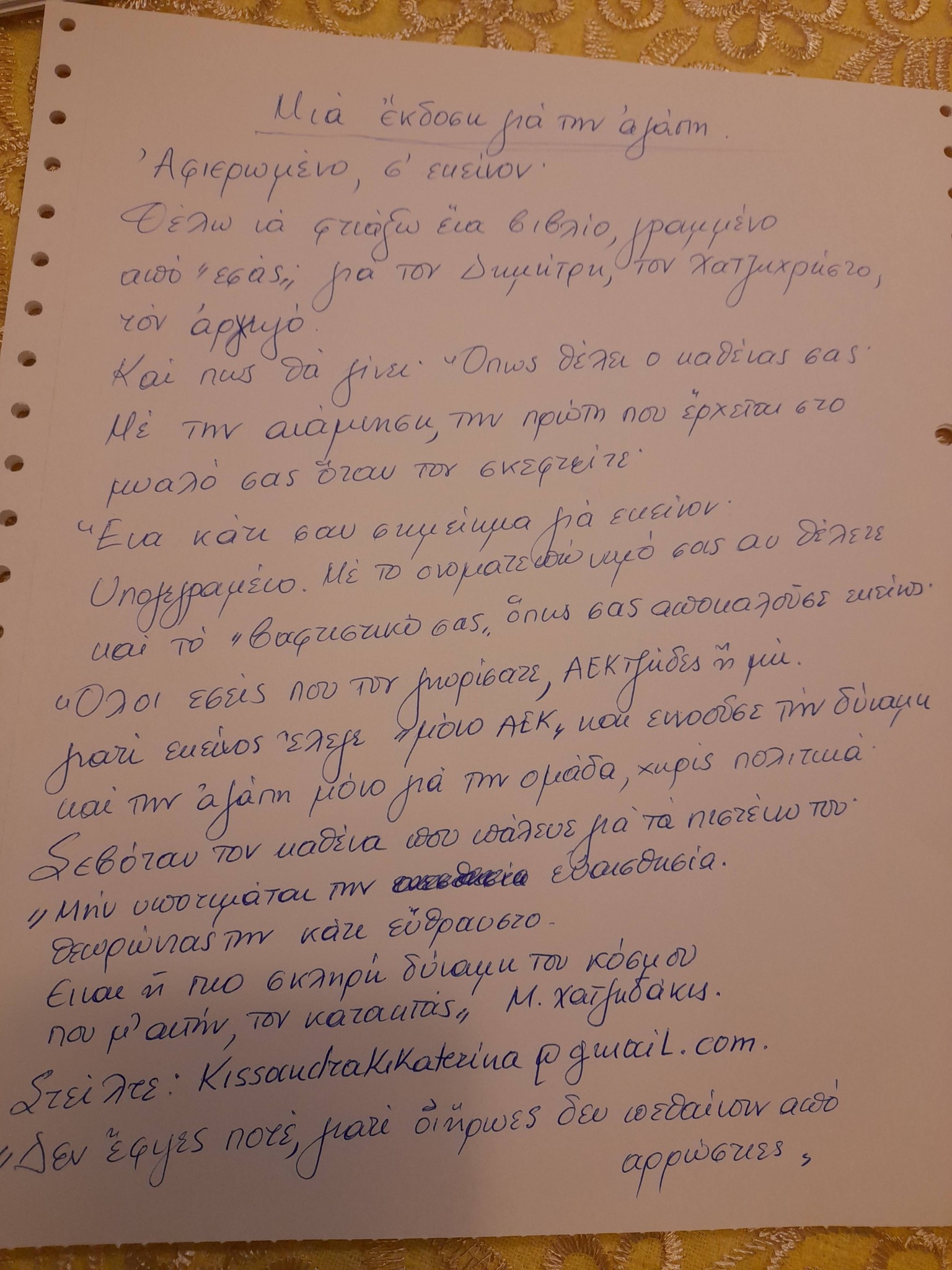 Στείλτε: kissandrakikaterina@gmail.com.