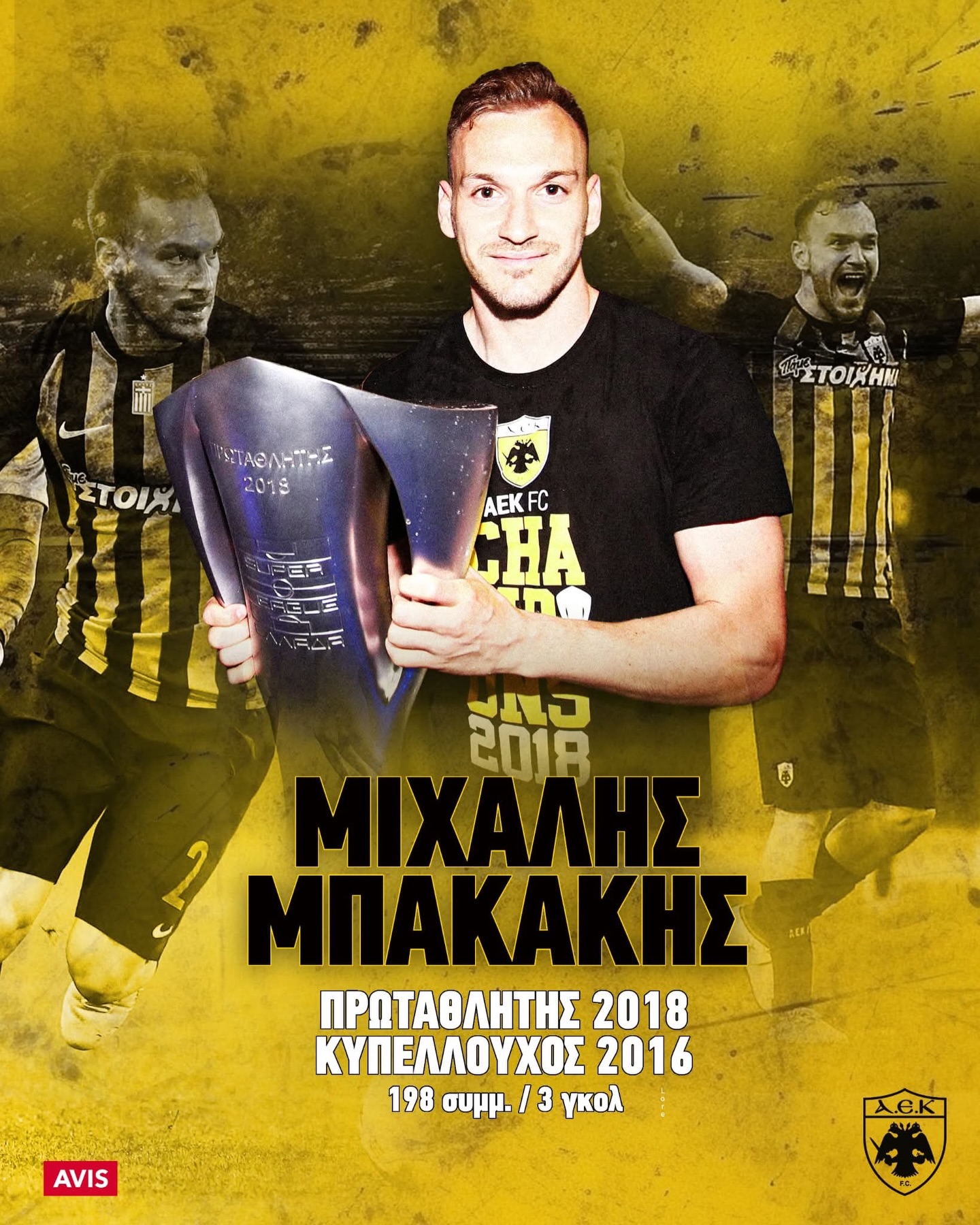Αποσύρθηκε σε ηλικία 34 ετών από το ποδόσφαιρο ο Μιχάλης Μπακάκης με την ΠΑΕ ΑΕΚ να μην ξεχνά την προσφορά του. “Μιχάλη, θα είσαι πάντα ένας από εμάς!” το μήνυμα των κιτρινόμαυρων το οποίο συνοδεύεται με την παρακάτω φωτογραφία: