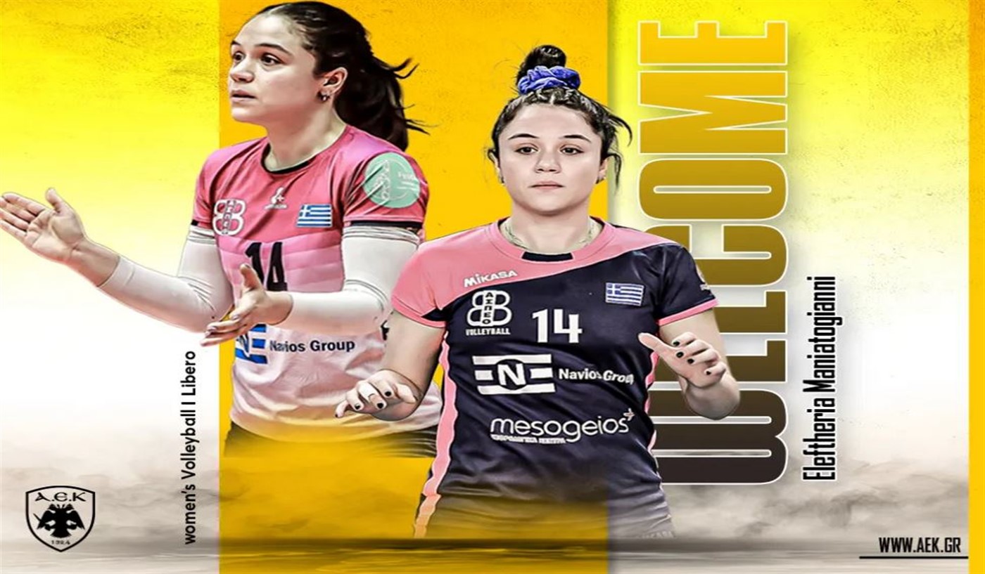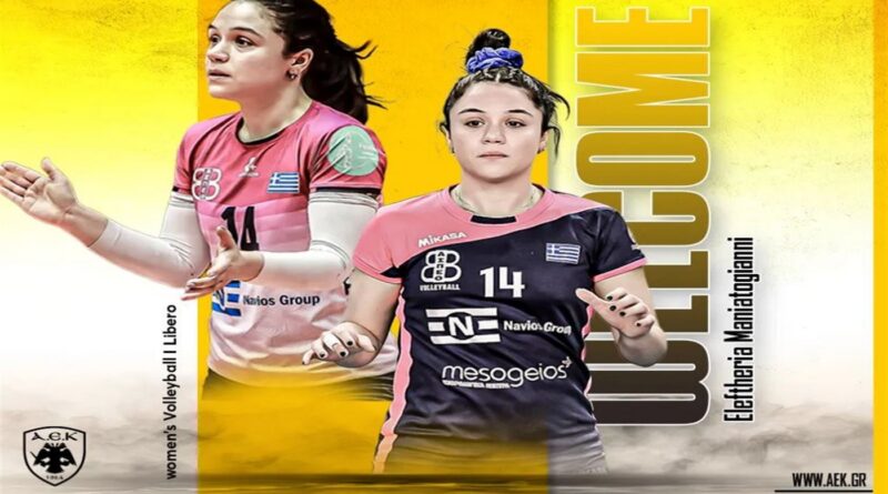 Η ΑΕΚ βρίσκεται στην ευχάριστη θέση να ανακοινώσει την έναρξη της συνεργασίας της με την Ελευθερία Μανιατογιάννη. Η 30χρονη (09/12/1995) διεθνής λίμπερο, ύψους 1,61 μ., υπέγραψε το συμβόλαιό της και εντάσσεται στο δυναμικό της γυναικείας ομάδας Βόλεϊ του Συλλόγου.
