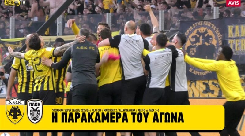 H AEK πέτυχε το απόγευμα της Κυριακής μια πολύτιμη, αλλά και επιβλητική νίκη απέναντι στον ΠΑΟΚ με 3-0 στην Allwyn Arena, για τη 2η αγωνιστική των play-off της STOIXIMAN Super League 2025-26 και κράτησε τον ρόλο του οδηγού στην κούρσα για την κατάκτηση του τίτλου.